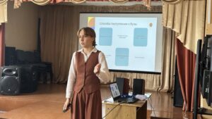 13.10.2025Ориентация на инженерные профессии стала главной темой диалога между учащимися 10-х классов и выпускницей гимназии, студенткой архитектурного факультета БНТУ Подоприго Елизаветой. Елизавета рассказала учащимся о возможностях и перспективах обучения учащихся в Национальном детском технопарке, своем пути становления и возможностях, которые дает детский технопарк учащимся учреждений образования нашей страны.
