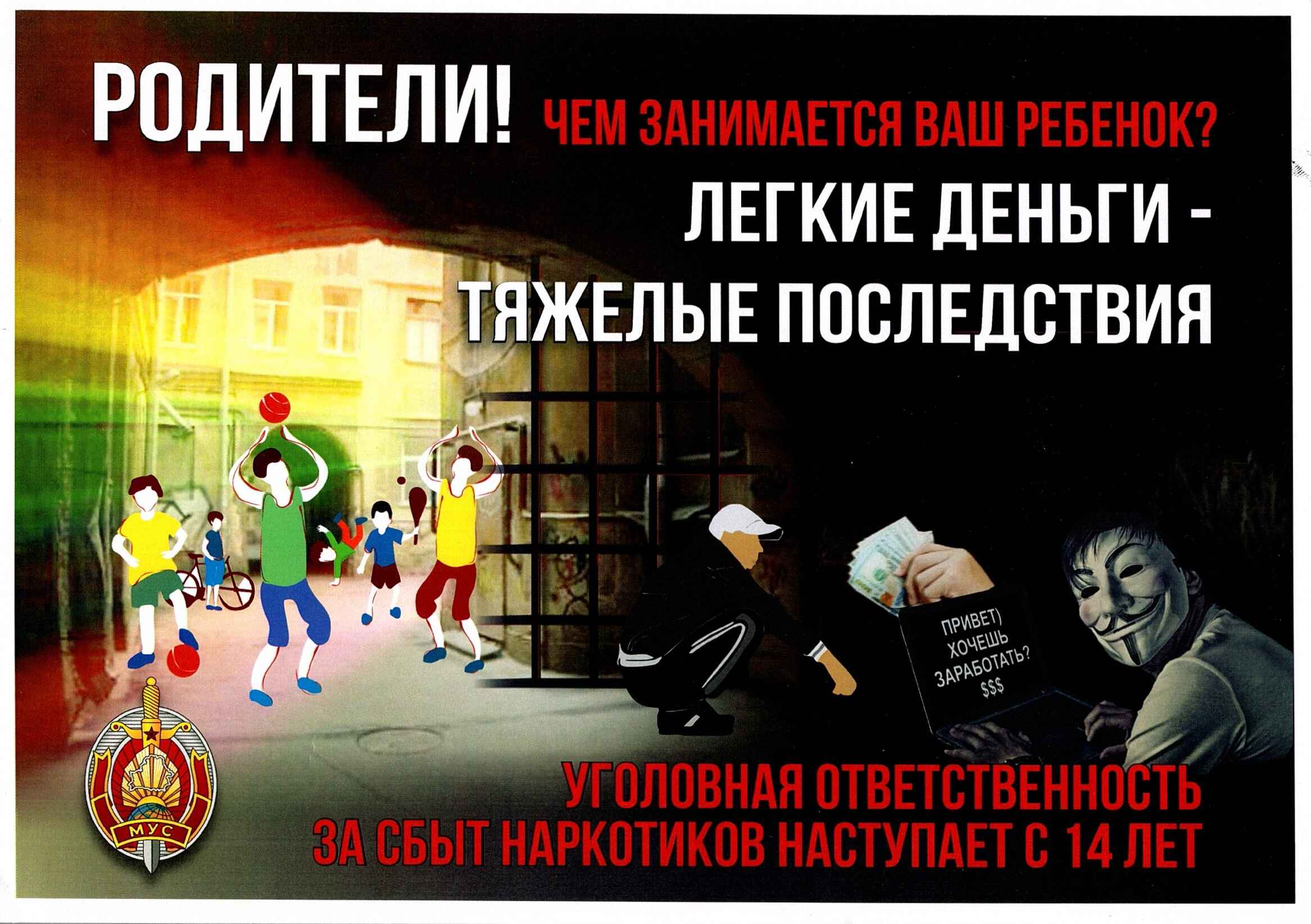 Уважаемые родители! Взрослые в социальных сетях активно вовлекают подростков в распространение наркотиков, заманивая «легким заработком». Поиск идет среди школьников и учащихся — тех, кто хочет быстро заработать. Обращайте внимание на то, чем в свободное время занимаются ваши дети, с кем они общаются, в том числе в интернете. При любых подозрениях о втягивании ребенка в противоправную деятельность поговорите с ним, при необходимости немедленно обращайтесь в милицию.