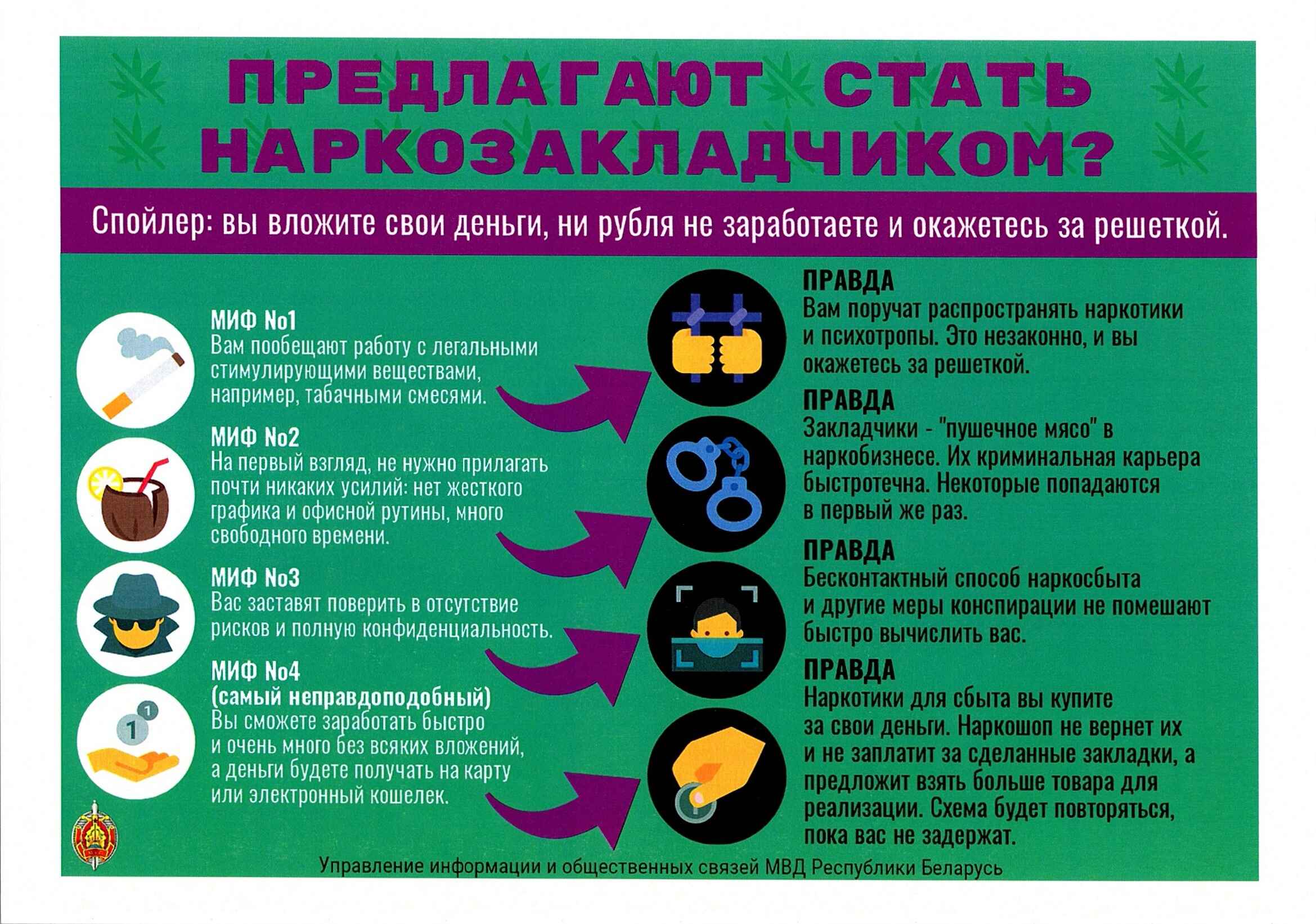 ⚡️ Основной способ вербовки — реклама в Интернете. Могут пообещать торговлю легальными стимуляторами, а на самом деле поручат распространять психотропы — это уголовно наказуемо. ?
