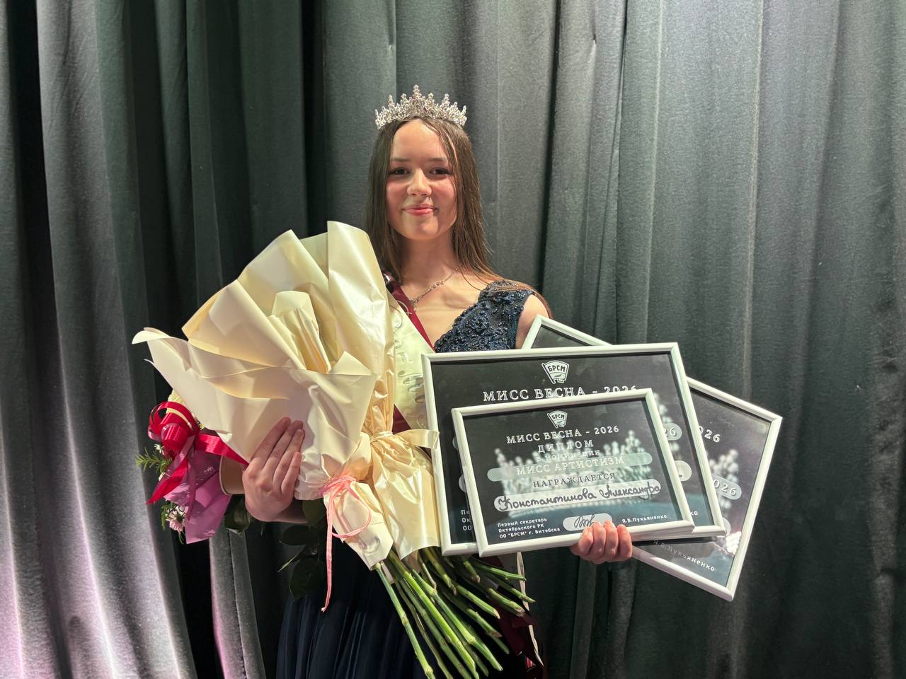 27.03.2026Поздравляем Константинову Александру, которая завоевала титул «Вторая Вице-мисс весна 2026», «Мисс артистизм», «Мисс ОНЛАЙН» в конкурсе творчества и артистического мастерства «Мисс весна — 2026». Желаем удачи на городском этапе конкурса!