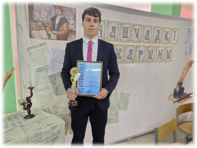 19.09.2025Поздравляем учащегося 11 «В» класса Бондарева Яромира, победителя Скориновской олимпиады в рамках республиканского проекта «Скориновские дни в Полоцке – 2025»