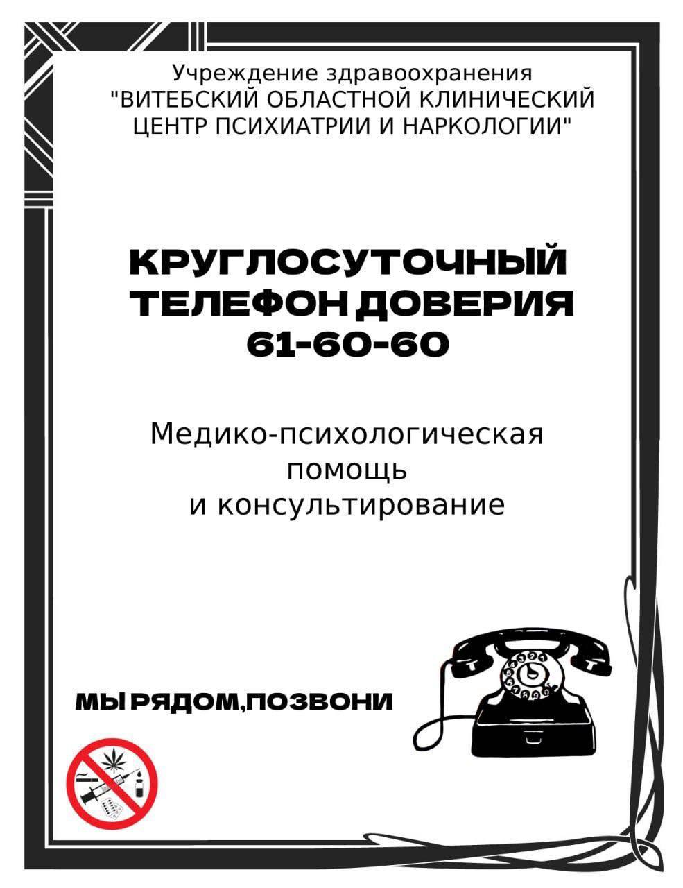 | «Телефон доверия» г. Витебск (круглосуточно) | 8 (0212) 61-60-60 |