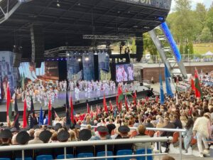 17 сентября учащиеся и педагогический коллектив гимназии стали участниками патриотического форума «Время выбрало нас. Время новых побед!», приуроченного ко Дню народного единства. На главной концертной площадке Витебской области были представлены яркие творческие номера, с приветственным словом выступили уважаемые гости, искренние поздравления и атмосфера дружбы и единства сплотили шесть тысяч зрителей в одну большую семью, где каждый важен и значим!